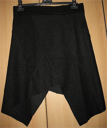 Topla suknja neobičnog, neravnomjernog kroja. Mekana i mucasta, blago rastezljiva. Ukrasi prošivi. Na suknji piše veličina L.
