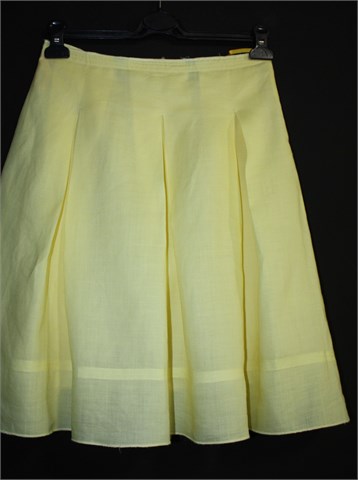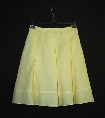 Carpe Diem lanena suknja, lijepe intenzivno žute boje. Falde sa prednje i stražnje strane, bočni cif. Podstavljena. Čvrst ali lagan i prozračan lan.