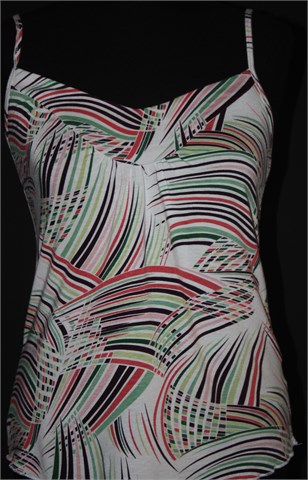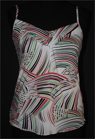 Carpe Diem topić bijele boje sa šarenim printom. Naramenice su prilagodljive dužine (kao na grudnjaku). Mekan i rastezljiv materijal.