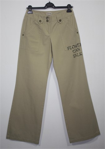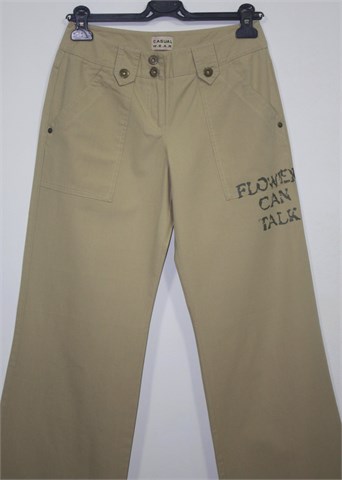 Casual Wear hlače bež boje, casual/cargo stila. Hlače imaju prednji cif i kopčanje, pasicu za remen. Prednji dublji džepovi, stražnji klasični sa preklopom. Na lijevom bedru natpis i aplikacija.