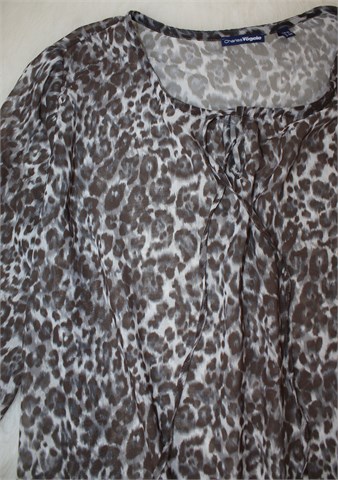Charles Vogele bluza sa poludugim rukavima i animal printom (boje i uzorak printa vidljivi na slikama). Vezice sa prednje strane (oko ovratnika), prošivena gumicama na kraju rukava i na pasici. Tanja i lagana, providna. Nije rastezljiva.