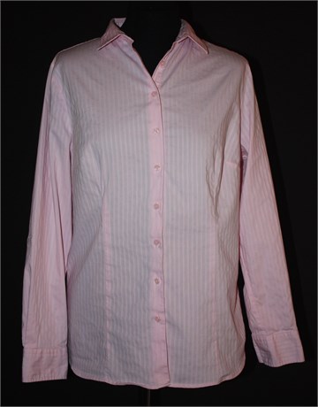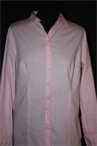 Charles Vogele košulja sa dugim rukavima, roze boje sa diskretnim prugama. Prednje kopčanje, gumbi na krajevima rukava. Prednji i stražnji ušitci (strukirana). Rastezljiva.