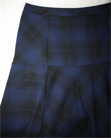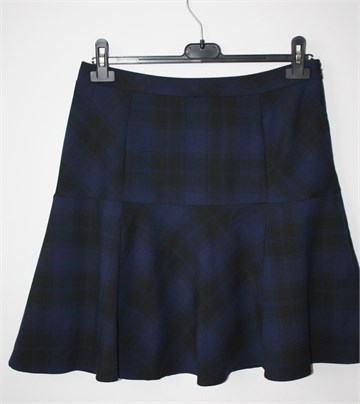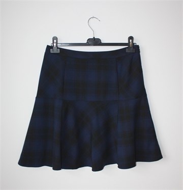 Charles Vogele suknja crno-plave boje sa uzorkom na materijalu (vidljivo na slikama). Bočni cif, podstavljena. Tanji, mekan i blago rastezljiv štof.