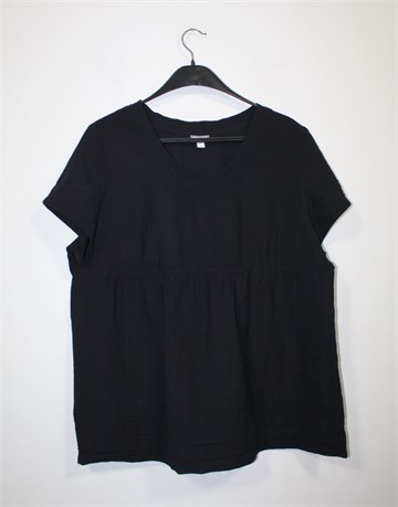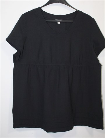 Chicc Collection bluza sa kratkim rukavima, crne boje. Materijal je diskretno prugast i blago zgužvan. Tanja i lagana.