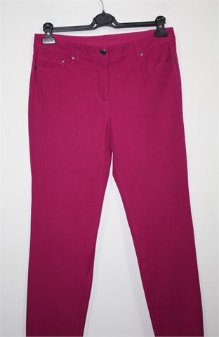 So Slimming by Chico's hlače ciklama roze boje. Prednji cif i kopčanje, pasica za remen. Prednji i stražnji džepovi, rastezljive. S unutarnje strane pasice blaga gumica, sa prednje unutarnje strane blagi steznik efekt.