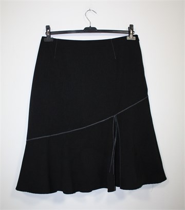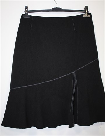 Christine Laure suknja tamno sive boje, prošivena ukrasnom trakicom i koncem (kao na slici). Bočni cif, podstavljena. Tanji i gladak materijal (kao tanki štof).