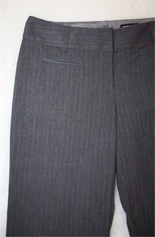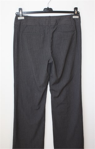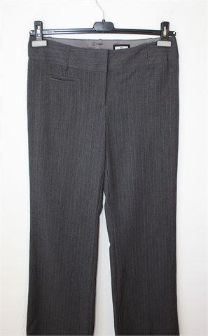 Clockhouse (C&A) hlače sive boje sa prugastim uzorkom (boje uzorka vidljive na slikama). Prednji cif i kopčanje, pasica za remen. Mali prednji džepić, mali stražnji džepovi (djelomično još uvijek zašiveni). Blago rastezljive, tanji štofasti materijal.