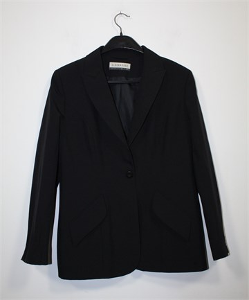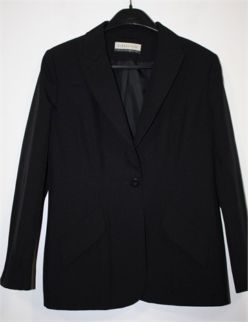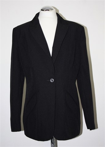 Clockhouse (C&A) vintage sako crne boje, klasičnog kroja. Prednje kopčanje, prednji kosi džepovi sa preklopom (zašiveni). Jastučići u ramenima, podstavljen.