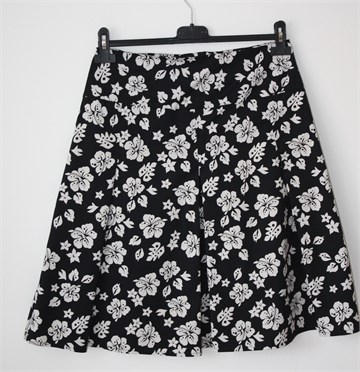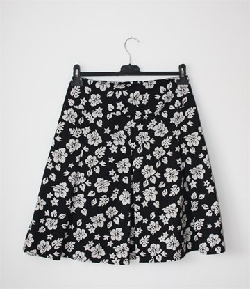 Clockhouse (C&A) suknja crne boje sa bijelim cvjetnim printom (uzorak printa vidljiv na slikama). Stražnji cif, sa prednje strane falda i ušitak. Rastezljiva.