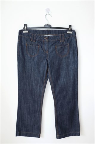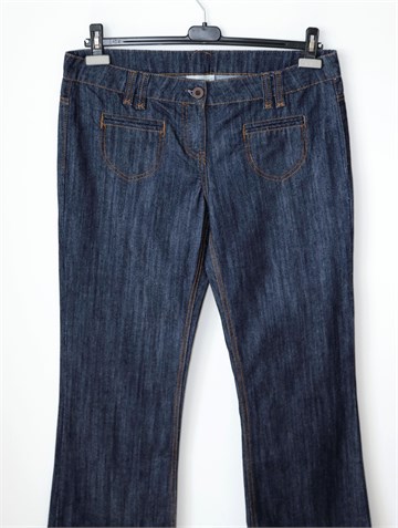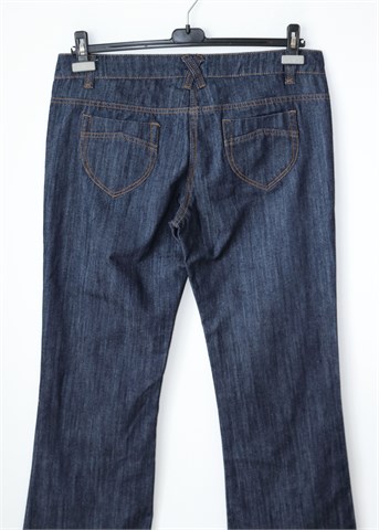 Clockhouse (C&A) traper hlače plave boje. Prednji cif i kopčanje, pasica za remen. Mali prednji i stražnji klasični džepovi. Ravne i šire nogavice (vidjeti mjere), nisu rastezljive.