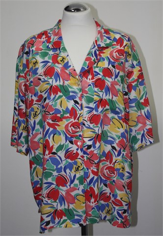 Clockhouse (C&A) vintage košulja bijele boje sa šarenim cvjetnim printom (boje i uzorci kao na slikama). Malo duži kratki rukavi, prednje klasično kopčanje, džepić na prsima.