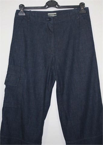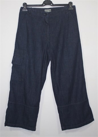 Closed poluduge traper hlače, tamnije plave boje. Šire nogavice sa bočnim rasporcima na krajevima nogavica, veliki bočni džep. Prednji bočni kosi džepovi. Tanji traper, dublji model (vidjeti mjere).