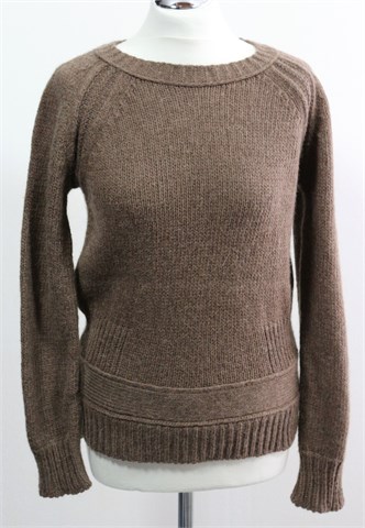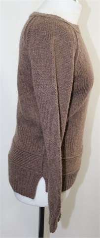 Closed vesta sa dugim rukavima, prošarano smeđe boje. Deblje, rastezljivo i mekano pletivo. Stražnja strana je mrvicu duža od prednje.