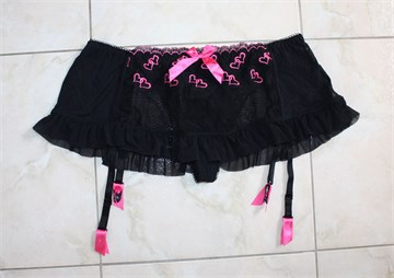 Closer with E-Vie halteri sa ušivenim tanga gaćicama, crne boje sa rozim detaljima. Kopčice za haltere su odvojive.