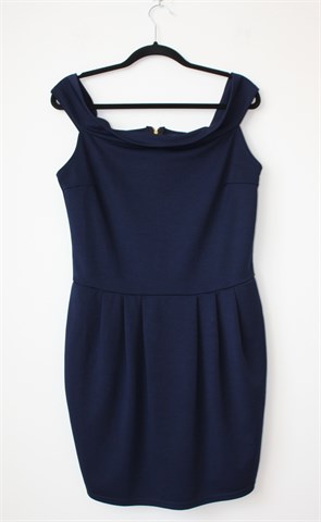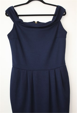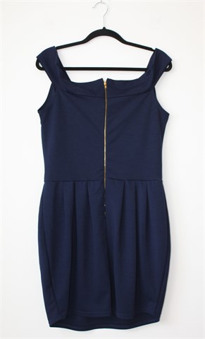 Club L haljina tamno plave boje. Stražnji cif, faldice u donjem dijelu. Materijal srednje debljine, rastezljiv.