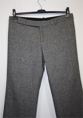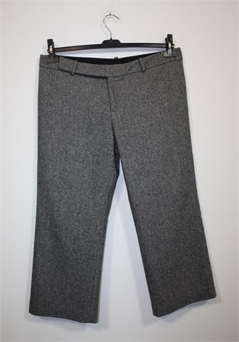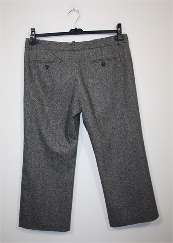 Club Monaco poluduge hlače prošarano sive boje (špricani uzorak crno-bijele boje). Prednji cif i kopčanje, uska pasica za remen. Stražnji džepići sa gumbom, djelomično podstavljene. Topli štofasti materijal.