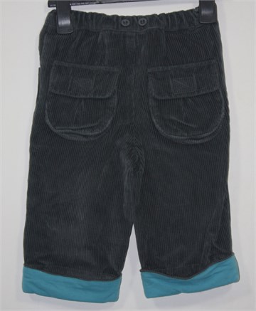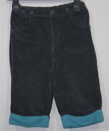 Coconut baby hlačice od samta, tamno sive boje. Rastezljiva pasica (sa unutrašnje strane gumice i gumbići), prednji i stražnji džepovi.