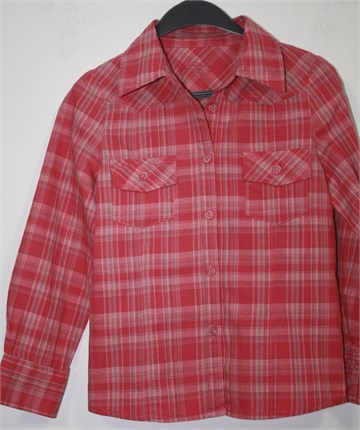 Coconut girl košulja sa dugim rukavima, tamno roze boje sa prugasto-kariranim uzorkom (uzorak kao na slikama). Prednje kopčanje, džepići na prsima. Čvrst i nerastezljiv pamuk.