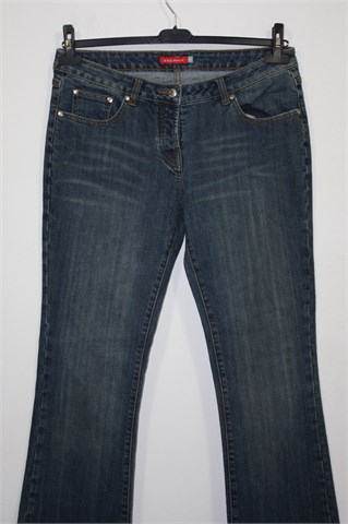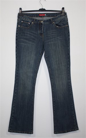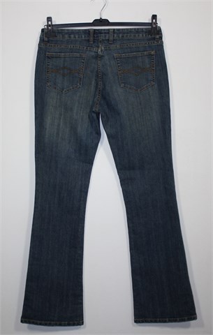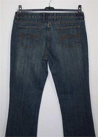 Coconut traper hlače, srednje plave boje mjestimično ispranog i iscufanog izgleda (oko debljih šavova i na dnu nogavica). Prednje kopčanje, pasica za remen. Prednji i stražnji klasični džepovi. Blago rastezljive.