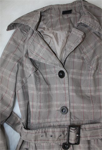 Colours of the world jakna/baloner sivo-bež boje sa uzorkom (boje i uzorak vidljivi na slikama). Prednje kopčanje, u struku remen (može se skinuti). Bočni džepovi sa gumbom, podstavljena. Nije rastezljiva.