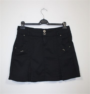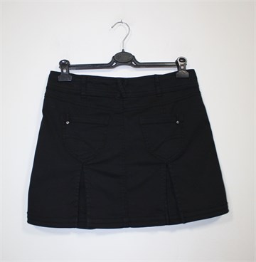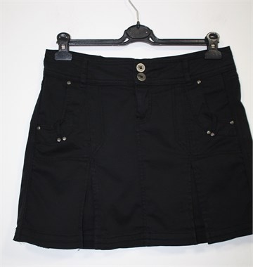 Colours of the world suknja crne boje (materijal djeluje kao tanji i mekan traper). Prednji cif i kopčanje, pasica za remen. Prednji i stražnji džepovi, faldice sa prednje i stražnje strane. Blago rastezljiva.