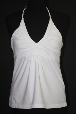 Colours of the world topić bijele boje sa vezanjem oko vrata (bijelo-srebrne pletene trake). Mekan i rastezljiv, deblji materijal.