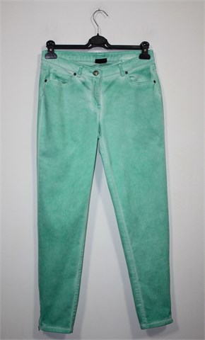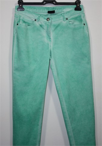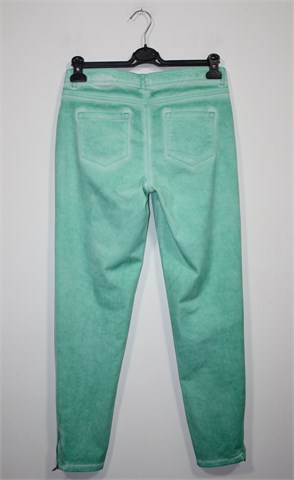 Colours of the World hlače od tanjeg i mekanog trapera, prošarano zeleno-bijele boje. Prednji cif i kopčanje, pasica za remen. Prednji i stražnji klasični džepovi. Sa vanjske strane ruba nogavica cif. Blago rastezljive.