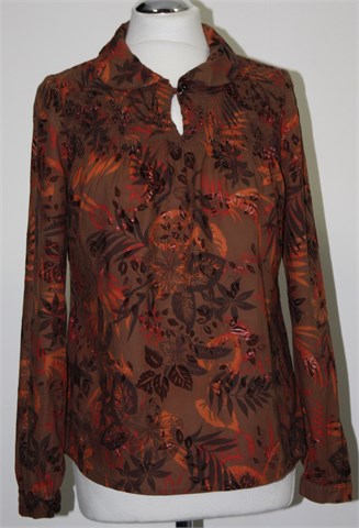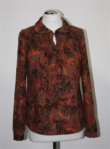 Concept bluza smeđe boje sa šarenim printom. Mekan i tanji pamuk.