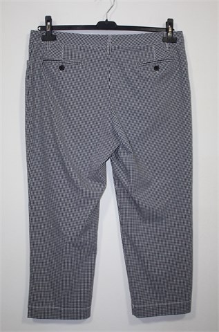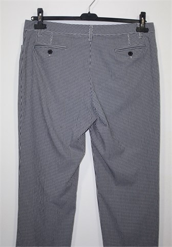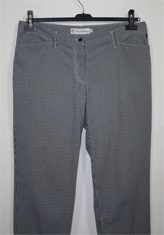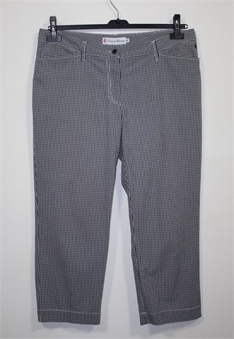 Conte of Florence poluduge hlače sa kockastim uzorkom u bijelo-plavoj kombinaciji. Prednji cif i kopčanje, pasica za remen. Prednji i stražnji džepovi (stražnji skriveni sa gumbom). Tanji i blago rastezljiv materijal.