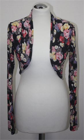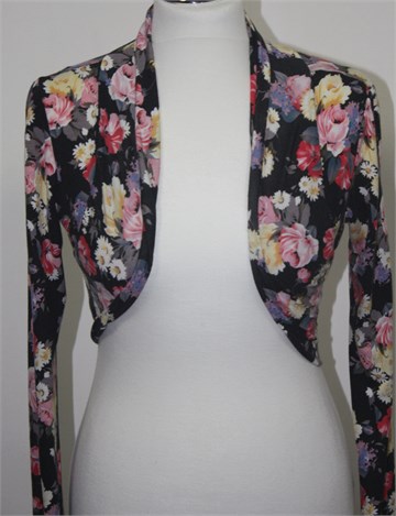 Cool Cat bolero (isprano) crne boje sa šarenim cvjetnim uzorkom. Mekan i rastezljiv.