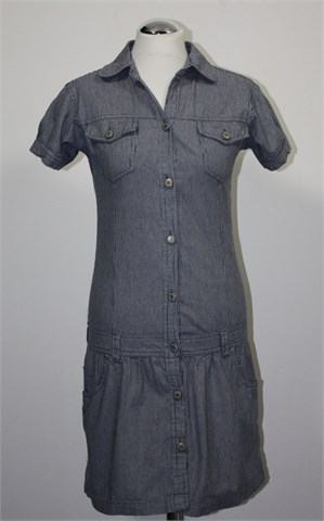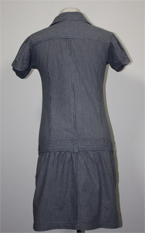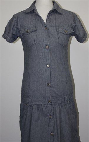 CrashOne halijna/tunika sa kratkim rukavima, prugasta kombinacija plave i bijele boje. Prednje kopčanje (otvor gumba na pasici se malo rastegnuo ali ne smeta kod nošenja i nije primjetno), džepići na prsima. Na bokovima pasica za remen, prednji bočni džepovi. Deblji i čvrsti pamuk.