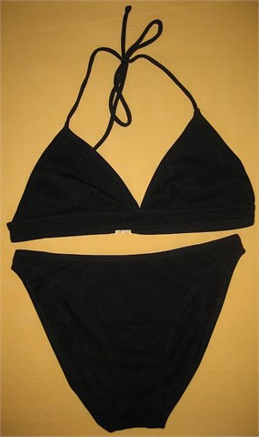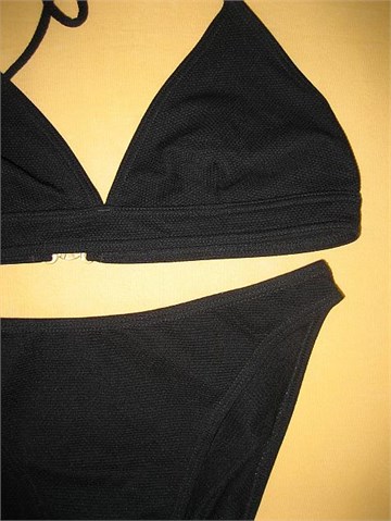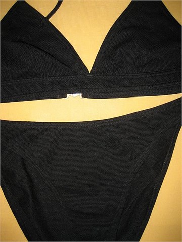 Gornji dio trokutići, nisu podstavljeni. Vezanje sa vrpcom oko vrata. Kopčanje sa kopčicom na leđima.