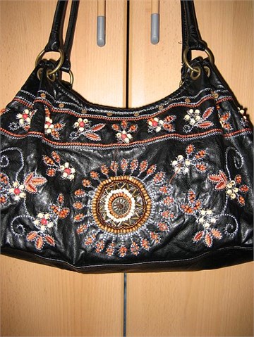 Imitacija kože, mekana, našivene perlice, unutarnji odvojeni pretinac sa cifom i dva džepića, zatvaranje na cif i gumbić sa magnetom, par puta korištena