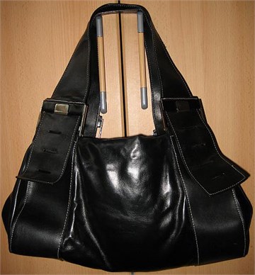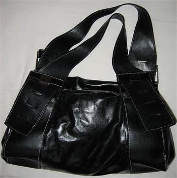 Imitacija kože, blago sjajna, dva cifa za zatvaranje/otvaranje, unutarnji džepić, dvije ručke, par puta korištena, kao nova