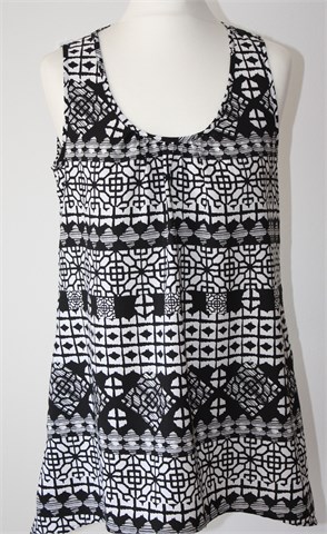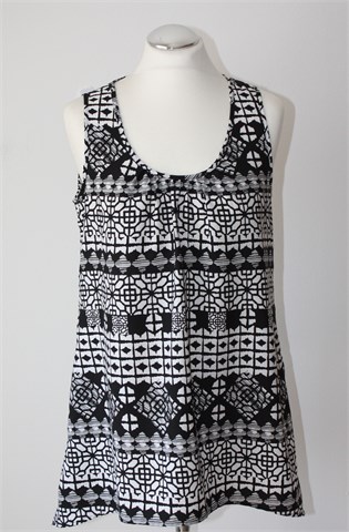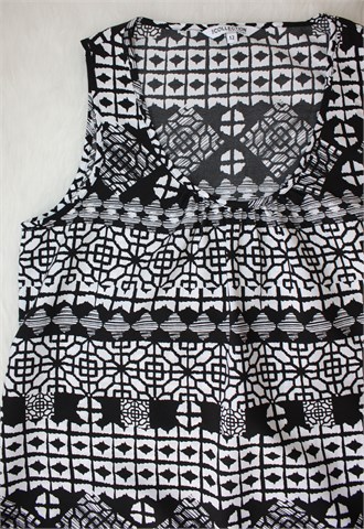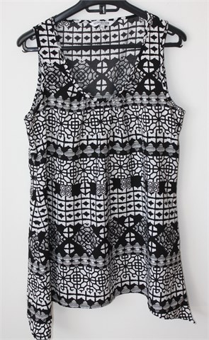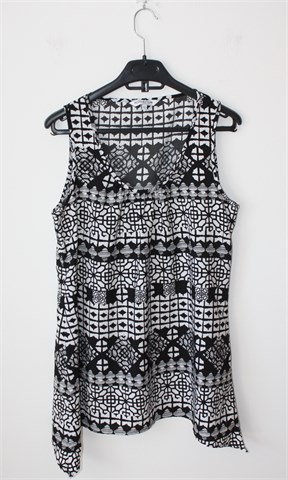 The Collection Debenhams bluza bez rukava, crno-bijele boje sa printom (uzorak printa vidljiv na slikama). Asimetrična dužina (nešto duža na bočnim stranama). Lagan i na dodir svilenkast materijal, nije rastezljiv.