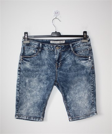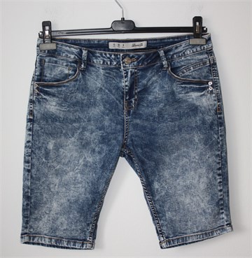 Denim & Co bermude od trapera, prošarano plave boje. Prednji cif i kopčanje, pasica za remen. Prednji i stražnji džepovi. Rastezljive.