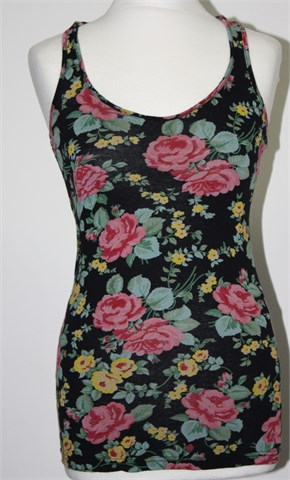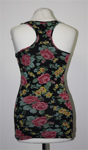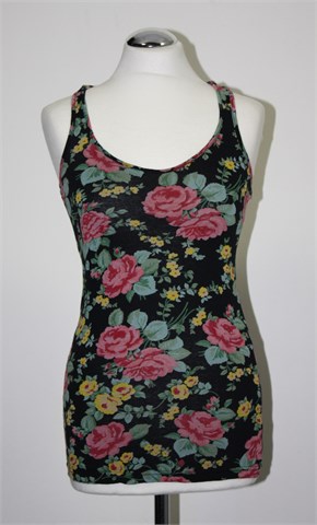 Denim & Co majica bez rukava/topić, crne boje sa šarenim cvjetnim printom. Tanji, mekan i rastezljiv materijal.