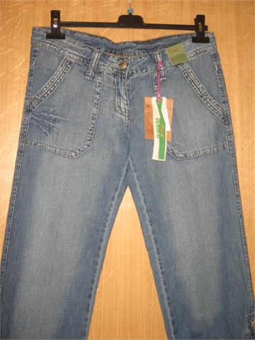Lagane, ljetne traper hlače od svijetlog trapera. Na svakoj nogavici po dva gumbića kojima se hlače mogu skratiti na dvije dužine. Blago šire nogavice, vrlo ugodan i mekan traper. Prednji cif i kopčanje, pasica za remen.