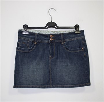Denim Life by Pimkie traper suknja, srednje plave boje mjestimično ispranog i iscufanog izgleda (tvornički used look). Prednji cif i kopčanje, pasica za remen. Prednji i stražnji klasični džepovi. Blago rastezljiva.