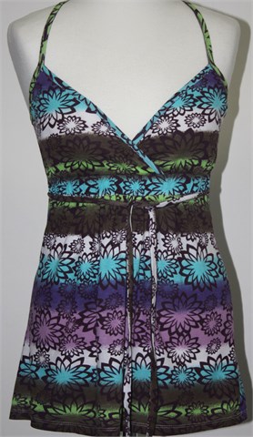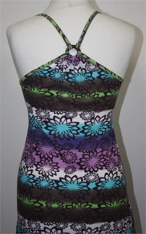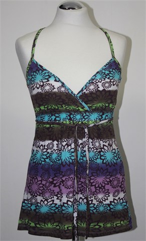 Derek Heart topić/majica bez rukava, šareni sa cvjetnim printom (boje i uzorci kao na slikama). Bočne trake za vezanje (sa prednje ili stražnje strane), podstavljen u prsima sa fiksnom spužvastom podstavom (ne mora se nositi grudnjak). Guma ispod prsiju, mekan i rastezljiv pamuk.