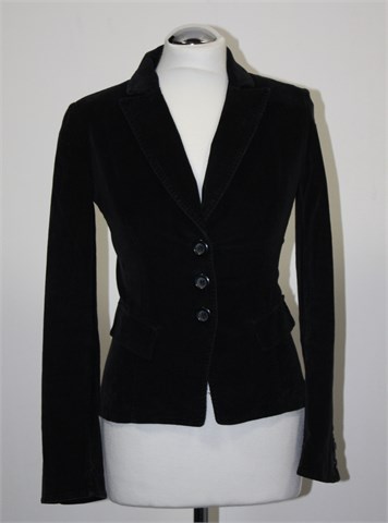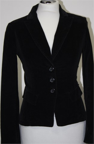 Diadema jakna/sako od samta crne boje. Prednje kopčanje, ukrasni džepovi sa prednje strane. Strukirana, jastučići u ramenima (mogu se odšiti). Rastezljiv i mekan samt.