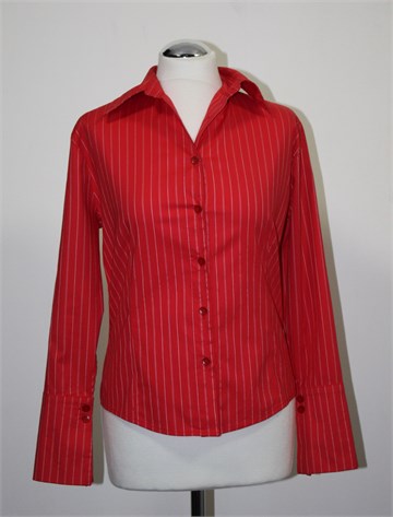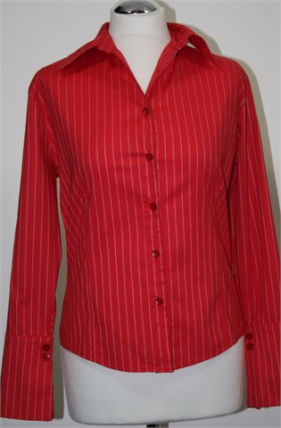 Diadema košulja sa dugim rukavima, crvene boje sa bijelim prugama. Prednje kopčanje, strukirana. Blago rastezljiva.
