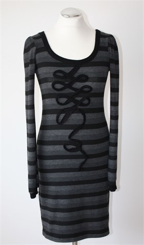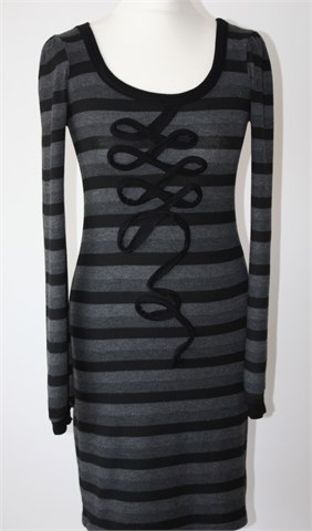 Diadema haljina/tunika sa dugim rukavima, prugasta kombinacija dvije nijanse sive i crne boje. Sa prednje strane našivena aplikacija od crne tkanine. Tanja i lagana, rastezljiva.