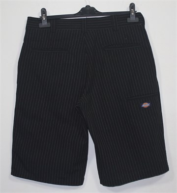 Dickies bermude crne boje sa bijelim prugama. Prednji cif i kopčanje, pasica za remen. Prednji bočni, stražnji skriveni džepovi. Čvrst i kvalitetan materijal.