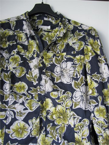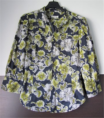 Diesel košulja tamno plave boje, diskretno prugasta sa cvjetnim uzorkom. Poludugi rukavi, džepići na prsima. Strukirana.