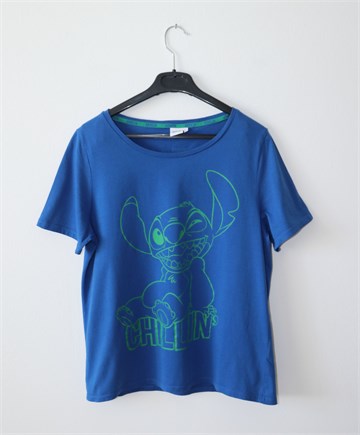 Disney Stitch majica plave boje sa printom, prednjim i stražnjim (vidljivo na slikama). Mekan i rastezljiv pamuk.