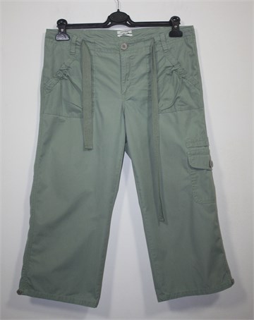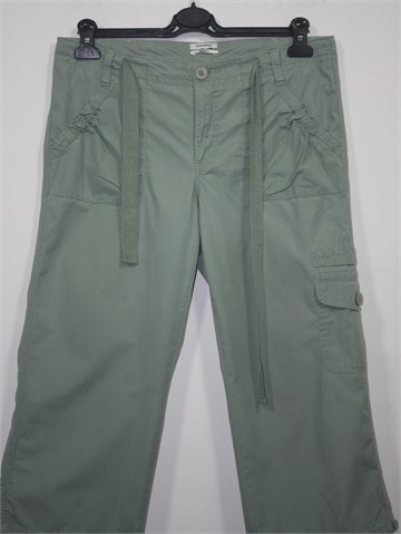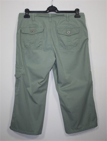 Dockers poluduge hlače svijetlo maslinasto zelene boje (blagi used look). Prednji cif i kopčanje, pasica za remen i vezica u struku. Prednji i stražnji džepovi i jedan džep na bedru. Tanji i lagan pamuk.