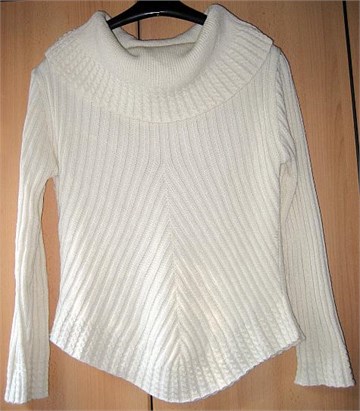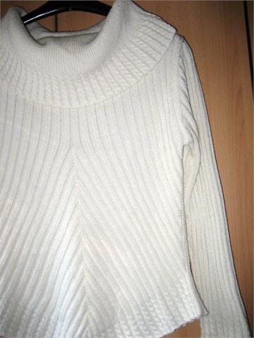 Dugi rukavi. Dolčevita, širi ovratnik. Mekano i rastezljivo pletivo. Na rukavima i pasici uzorak pletenica.