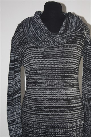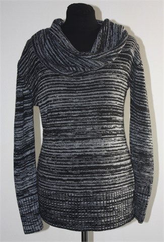 Pulover/dolčevita prošarano crno/bijele boje, sa dugim rukavima. Tanje, mekano i rastezljivo pletivo.