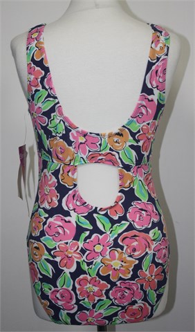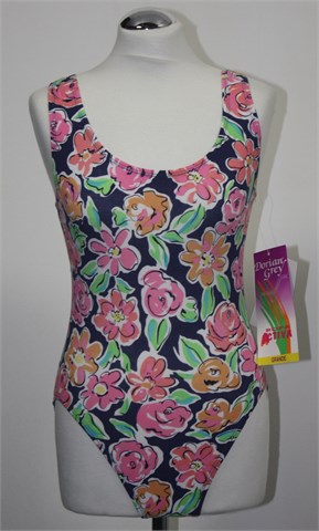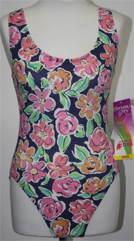 Dorian Grey body bez rukava, tamno plave boje sa šarenim cvjetni printom. Mekan i rastezljiv materijal, nema kopčanje.